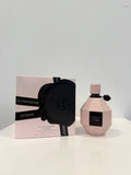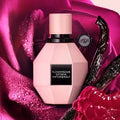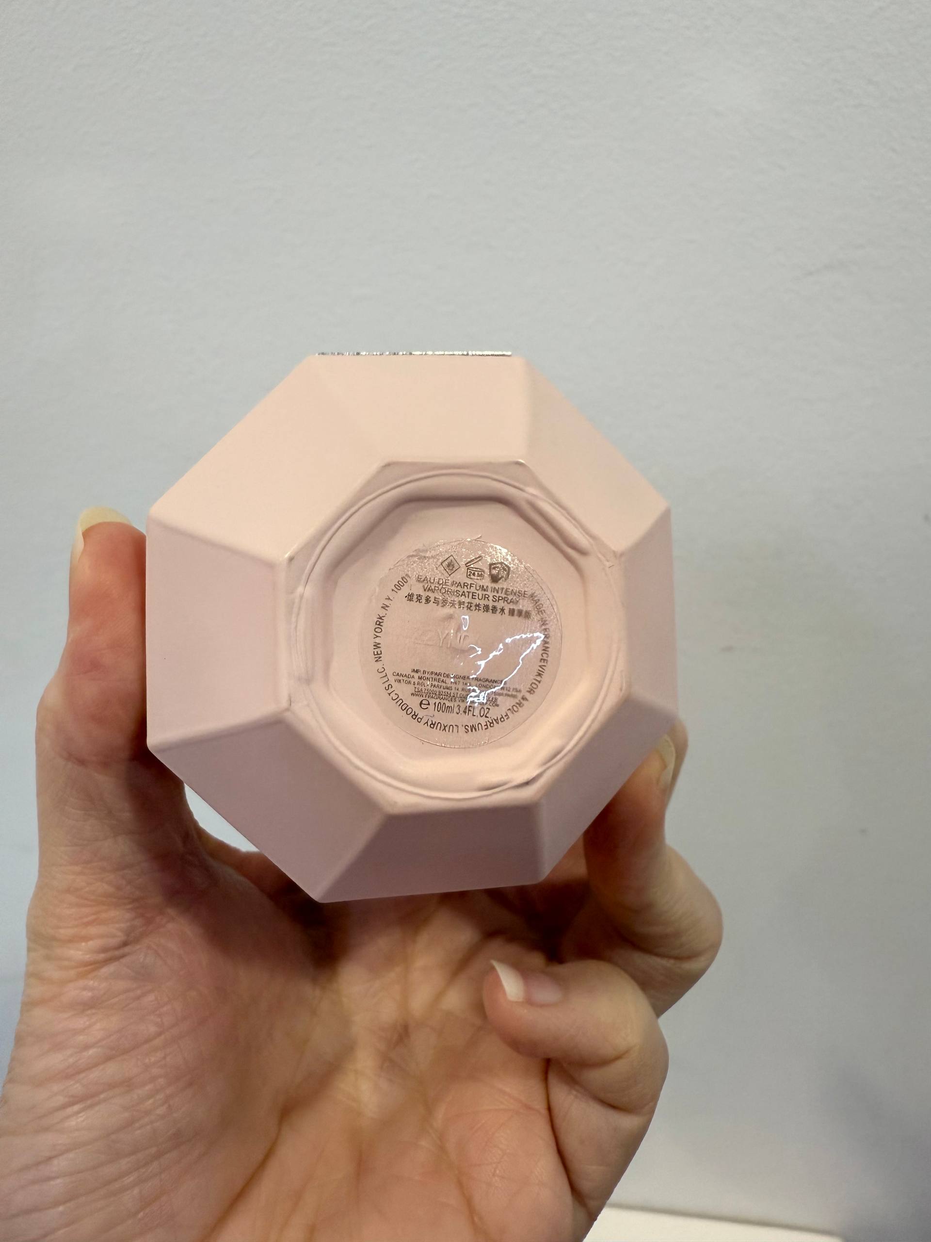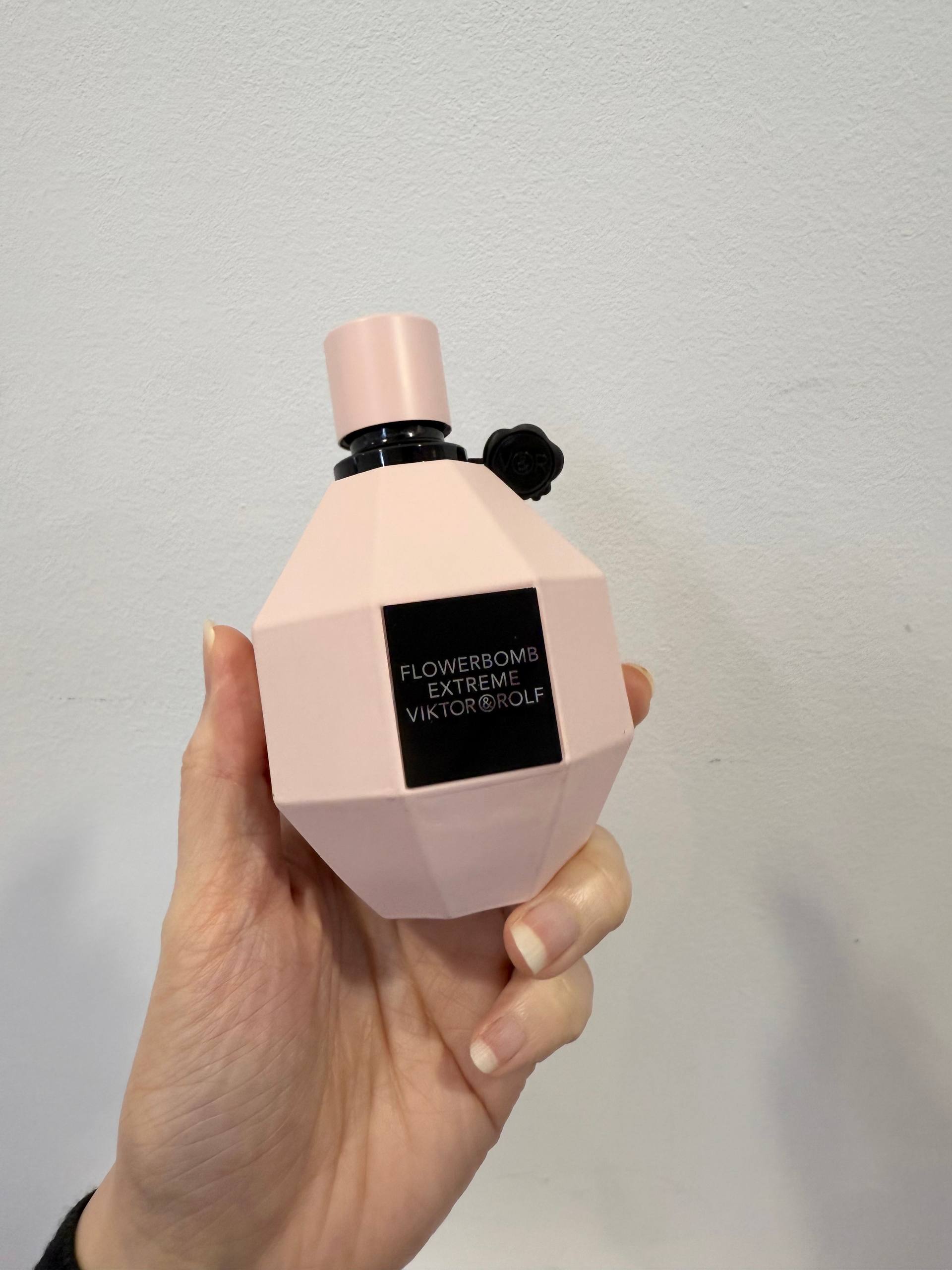 The signature diamond-shaped bottle — iconic to the Flowerbomb line — comes in a matte pink finish with a bold black Viktor & Rolf seal, reflecting the fragrance’s intensified and luxurious character.