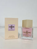 The perfume comes in an elegant, feminine bottle — often a clear flacon with soft, rosy hues and YSL’s signature detailing — reflecting its couture heritage and luxurious pedigree.